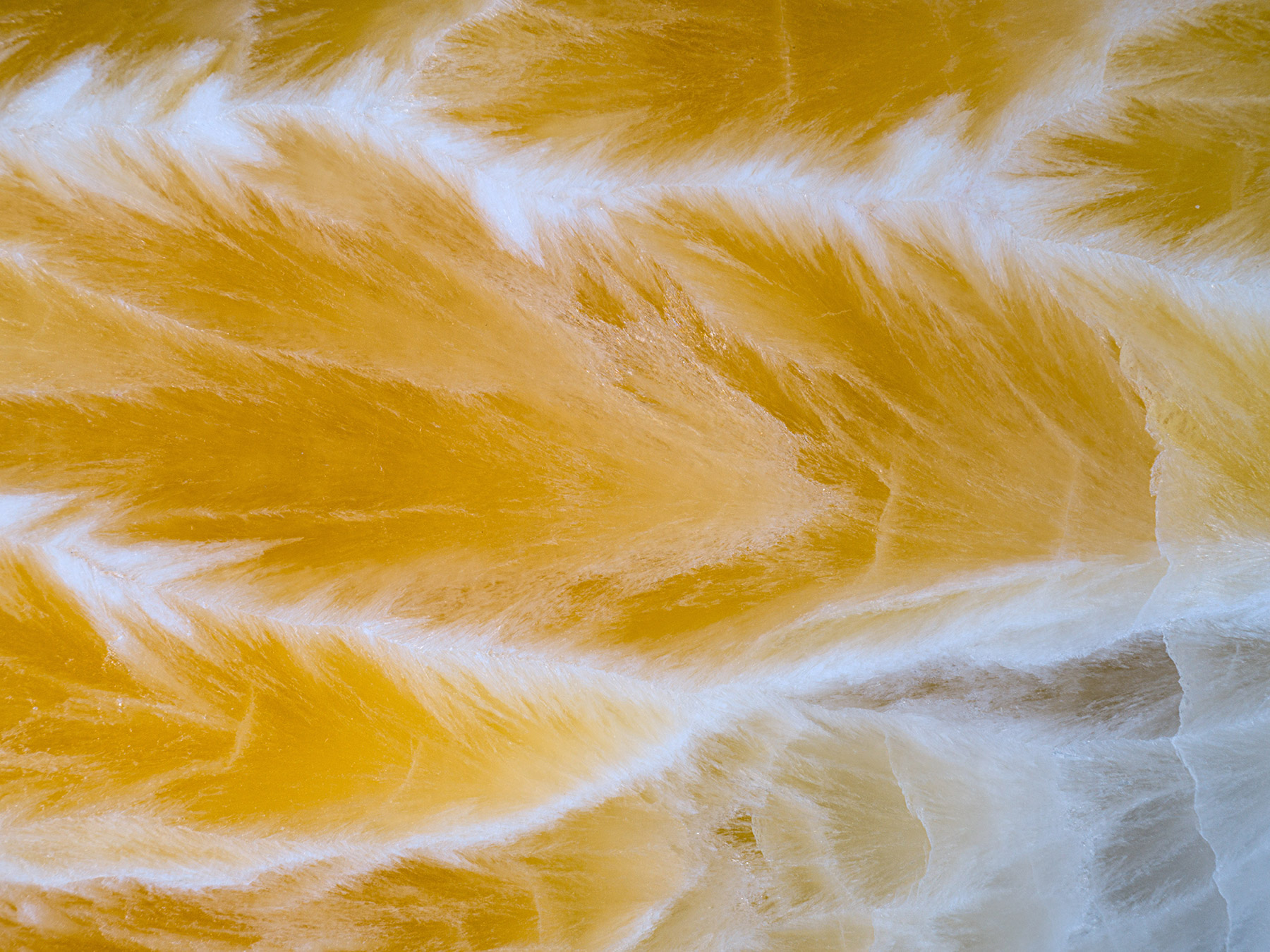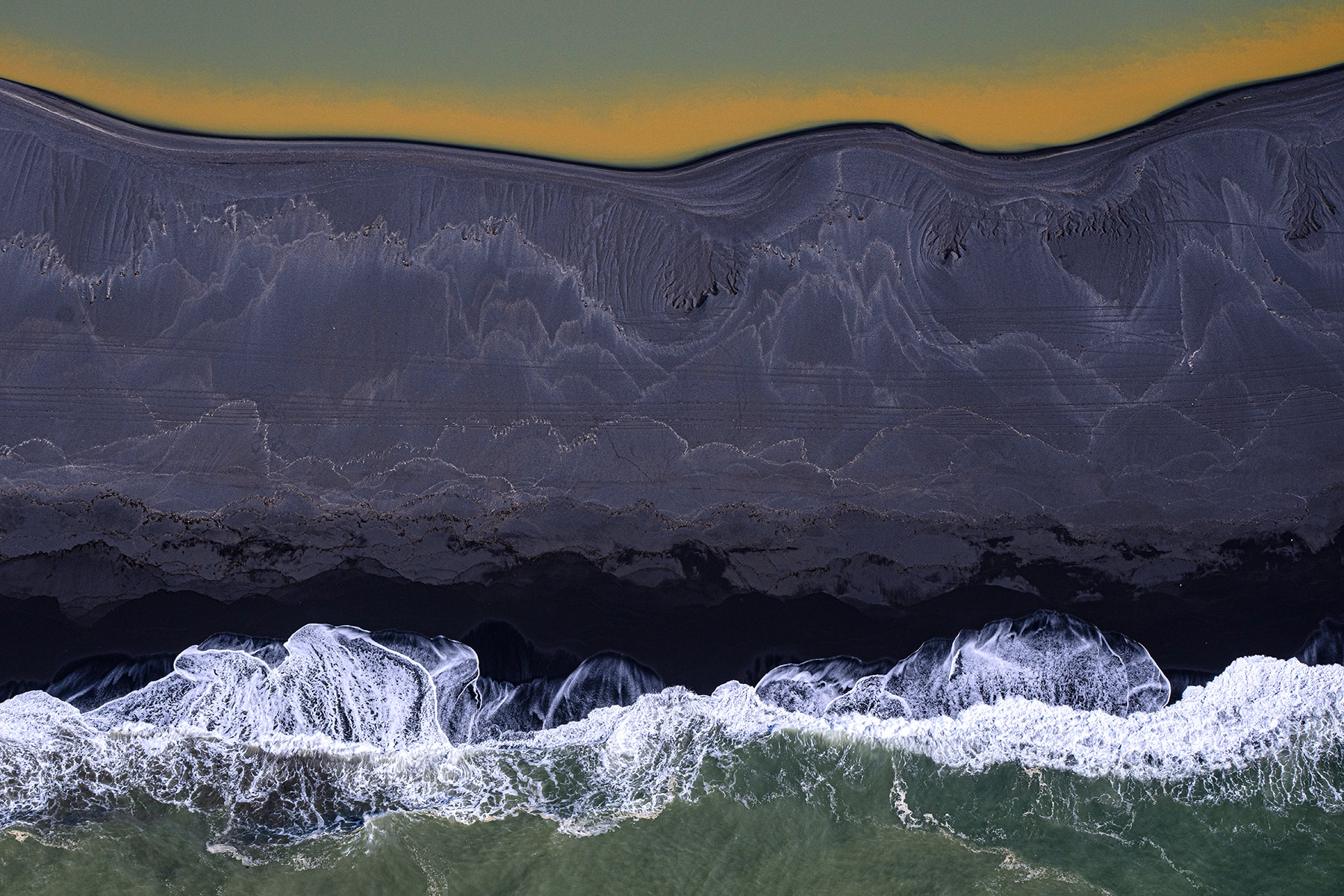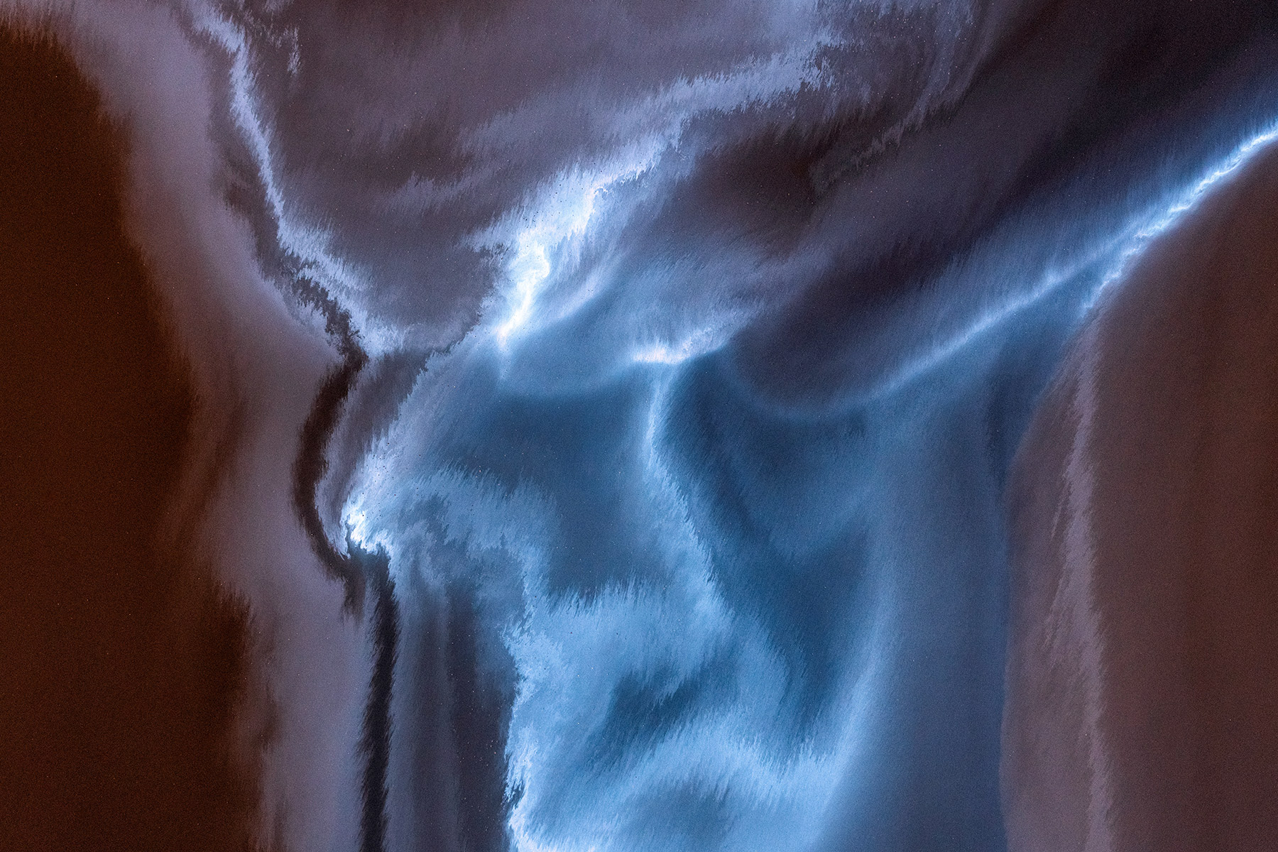 JM: There’s an image of a frozen waterfall inside a cave of black ice in Iceland. Of all the places in the world that I love to photograph, ice caves are by far at the top of the list. They’re stunningly beautiful and have a majesty that’s unlike anything else I’ve ever felt and seen. There’s a contrast that’s deeply unsettling when you walk into an ice cave. It feels like a transition between worlds. You go from the mess of the external world and into this incredibly quiet place. The only sound you’re likely to hear is running water, and there’s pattern, texture, and color everywhere. There are cracks in the walls and beautiful ripples and sculpted ice.