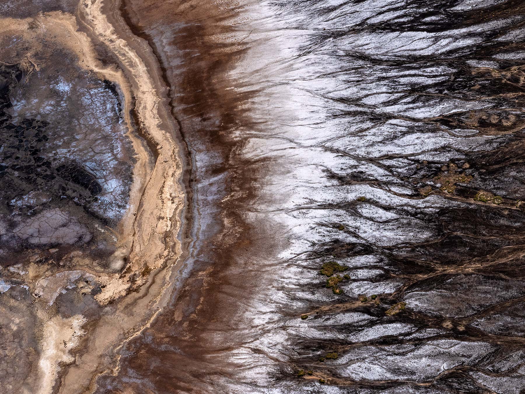 ↑ Suguta Valley, Kenya Patterns of ash and mineral color mark the path of ancient lava flows, imprinting the floor of the Rift Valley with a fiery memory.
