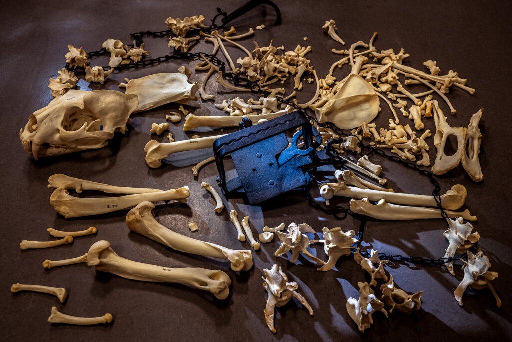 Bonn, Germany Millions of animals are killed annually by leg-hold traps, like the one pictured here. They might target certain animals, but they kill indiscriminately. Scientists at the laboratory for research at the Leibniz Institute for the Analysis of Biodiversity Change (LIB) are studying whether the remains of this cheetah might link back to a leg-hold trap.