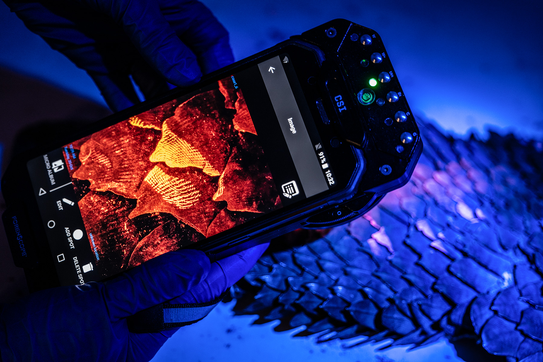 In the field, portable forensic devices are making these techniques more accessible. Multispectral imaging tools, adapted from crime scene investigation, can detect fingerprints, bodily fluids, and trace evidence on difficult surfaces like scales and shells. These handheld devices use UV, visible, and infrared light to reveal what would otherwise be invisible.